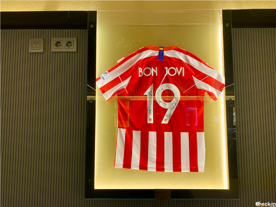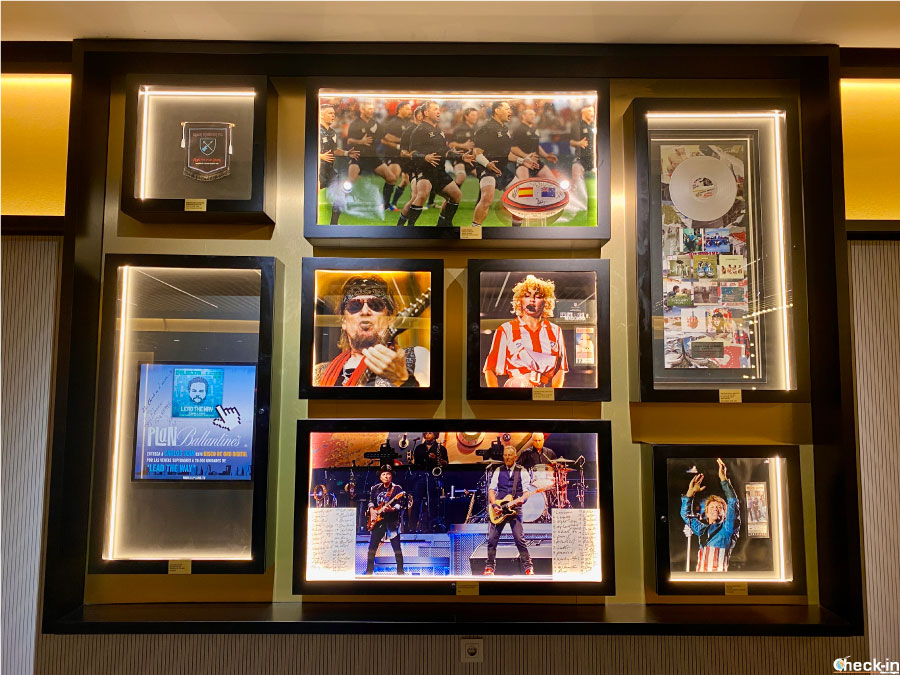 De vuelta al interior, la sala de bienvenida —supongo que esté reservada a invitados y personas con abonos o entradas VIP— conserva en sus paredes pósters, camisetas autografiadas y otros objetos que recuerdan eventos y conciertos celebrados en el Metropolitano en estos últimos años.